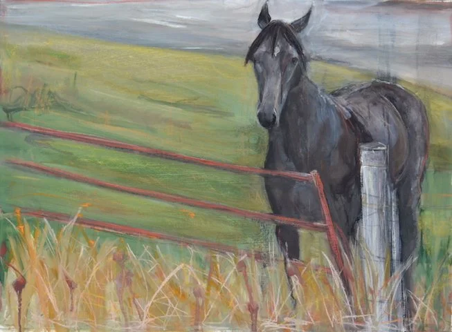 The power, beauty, and serenity of the equine form are examined in this complex group of work containing oil paintings, drawings, and collages.